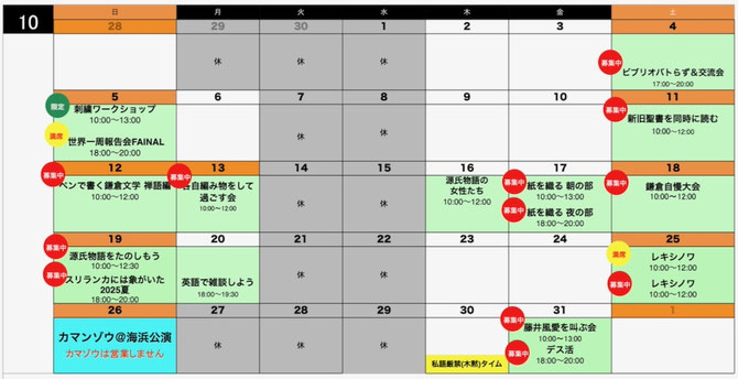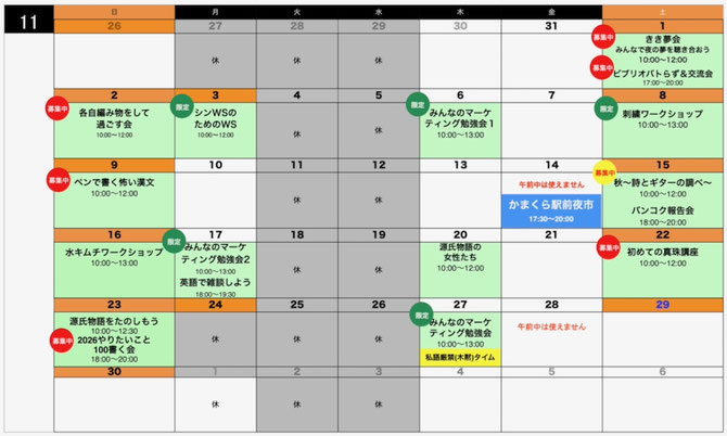 10月・11月のスケジュールです