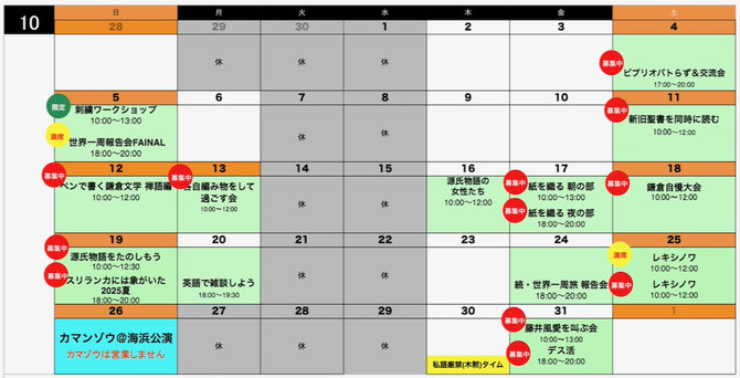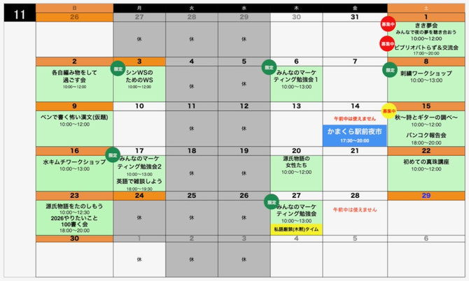 カレンダーに記入のない日の午前中は「貸し切り」でのご利用が可能です。